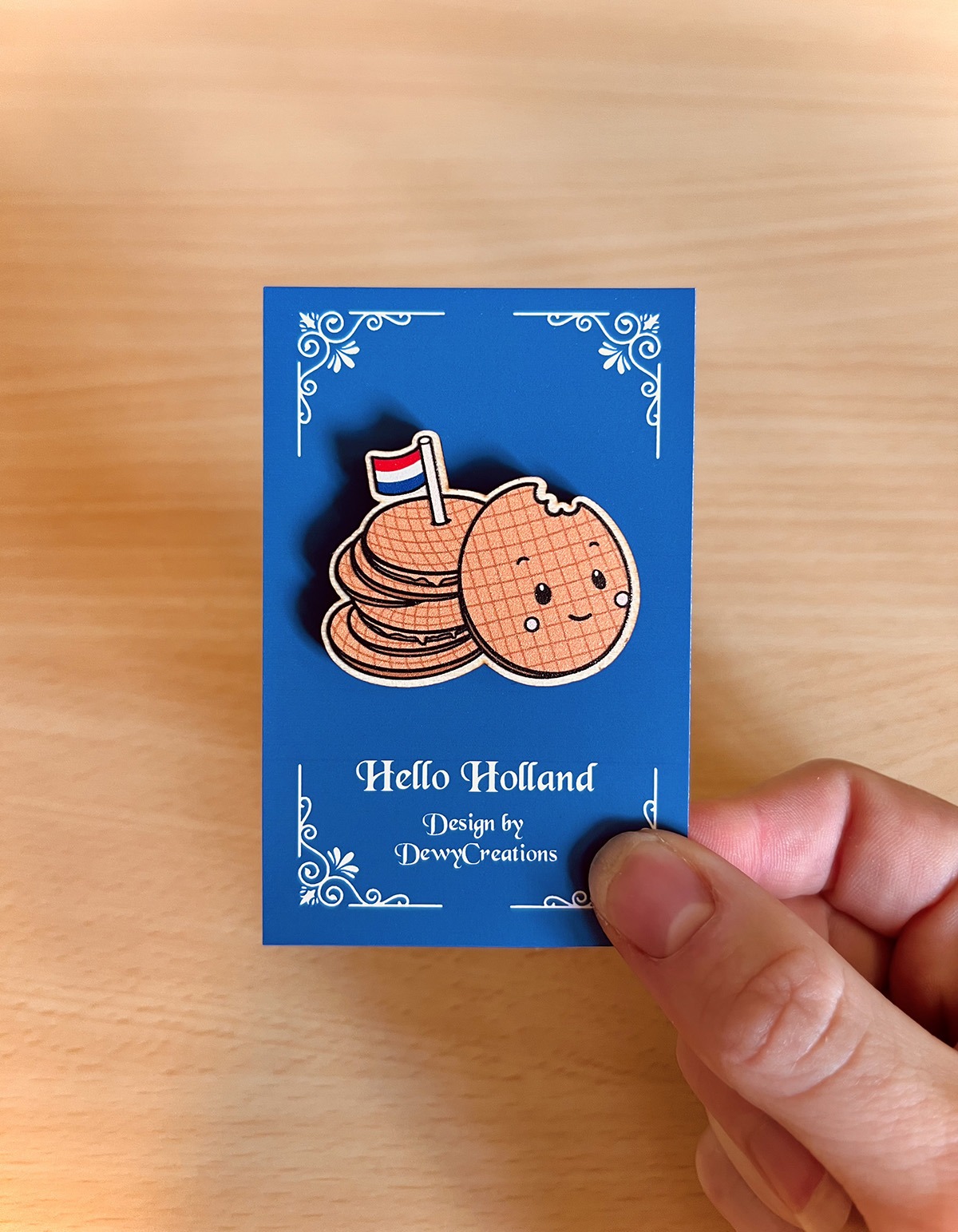 Hello Holland – schattige houten pin met Nederlandse stroopwafel