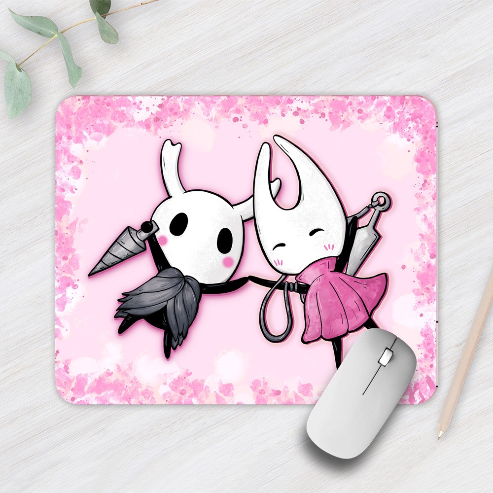 Schattige, kawaii, roze muismat met de Knight en Hornet uit Hollow Knight. Een must-have voor jouw gameroom!