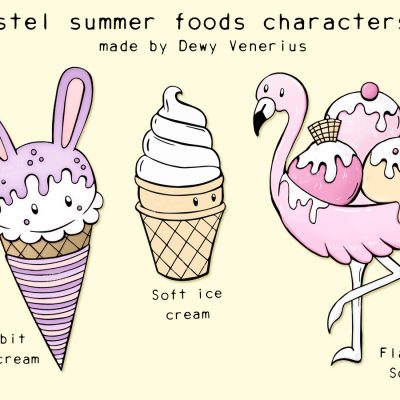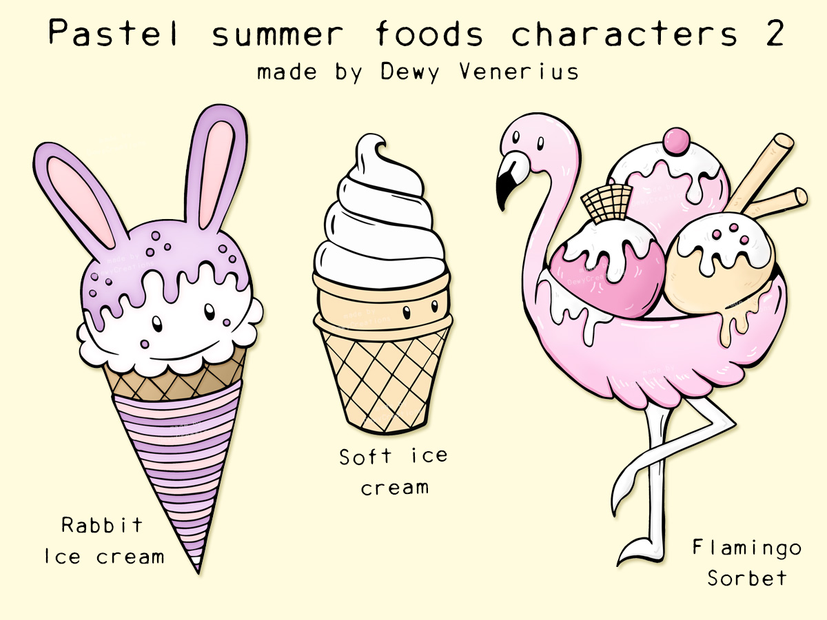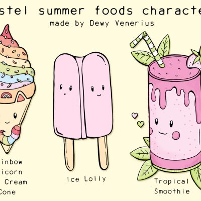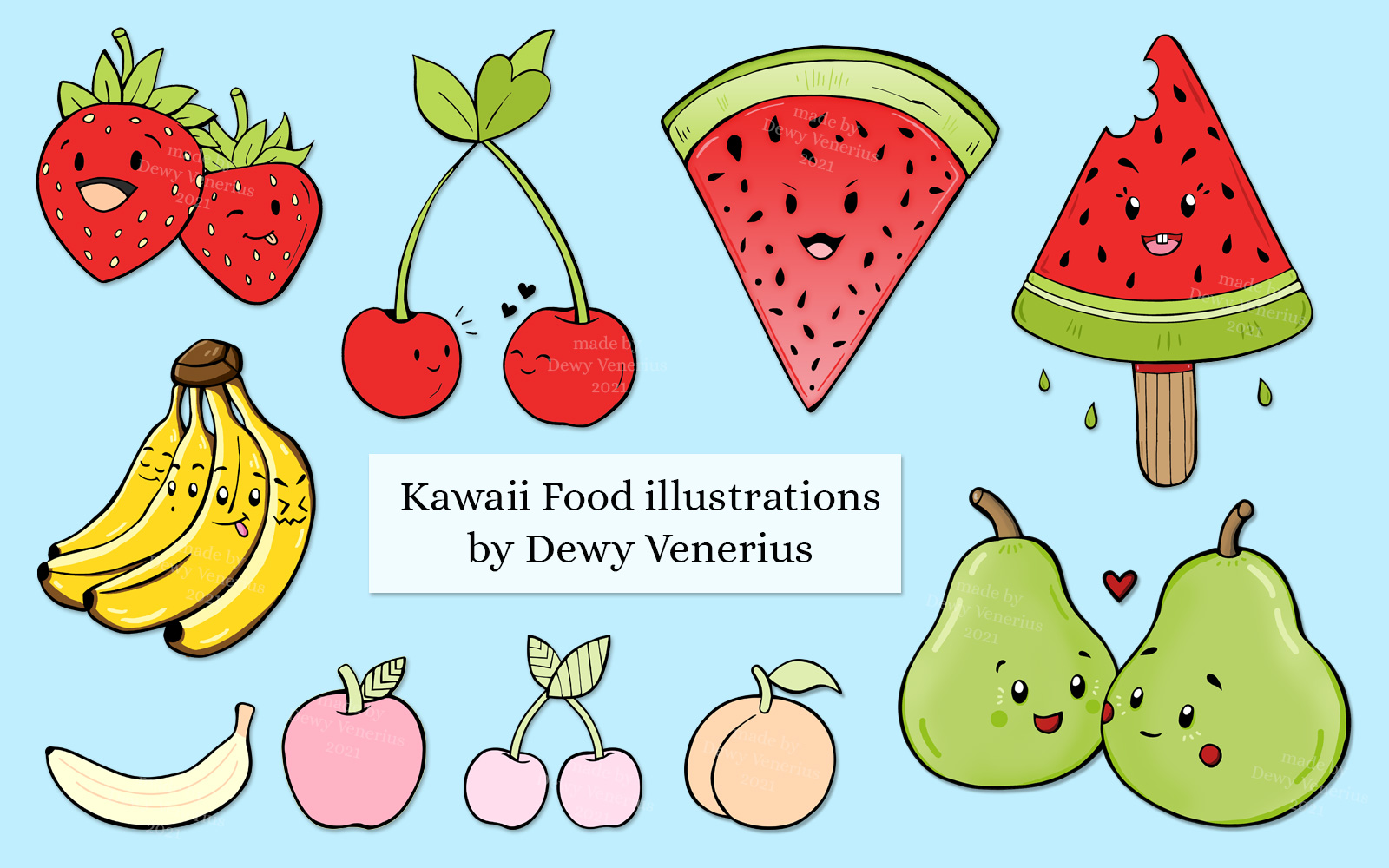 Food character designs Are you searching for cute food character designs or illustrations? You can send e an e-mail (dewycreations@gmail.com) for more information.