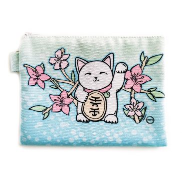 Pencil case with lucky cat & sakura flowers