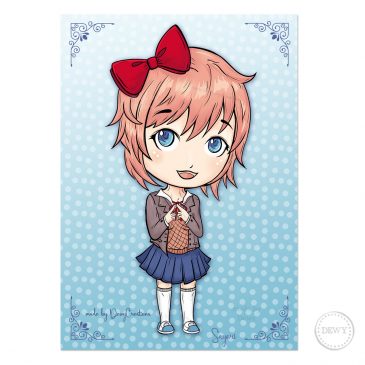 Fanart print Sayori – DDLC Poster met chibi tekening van Sayori uit Doki Doki Literature Club. Dit is een fanart gemaakt door Dewy, gebaseerd op het echte spel. De prijs is €9,50 per poster, exclusief verzendkosten. De poster is gedrukt … Continued