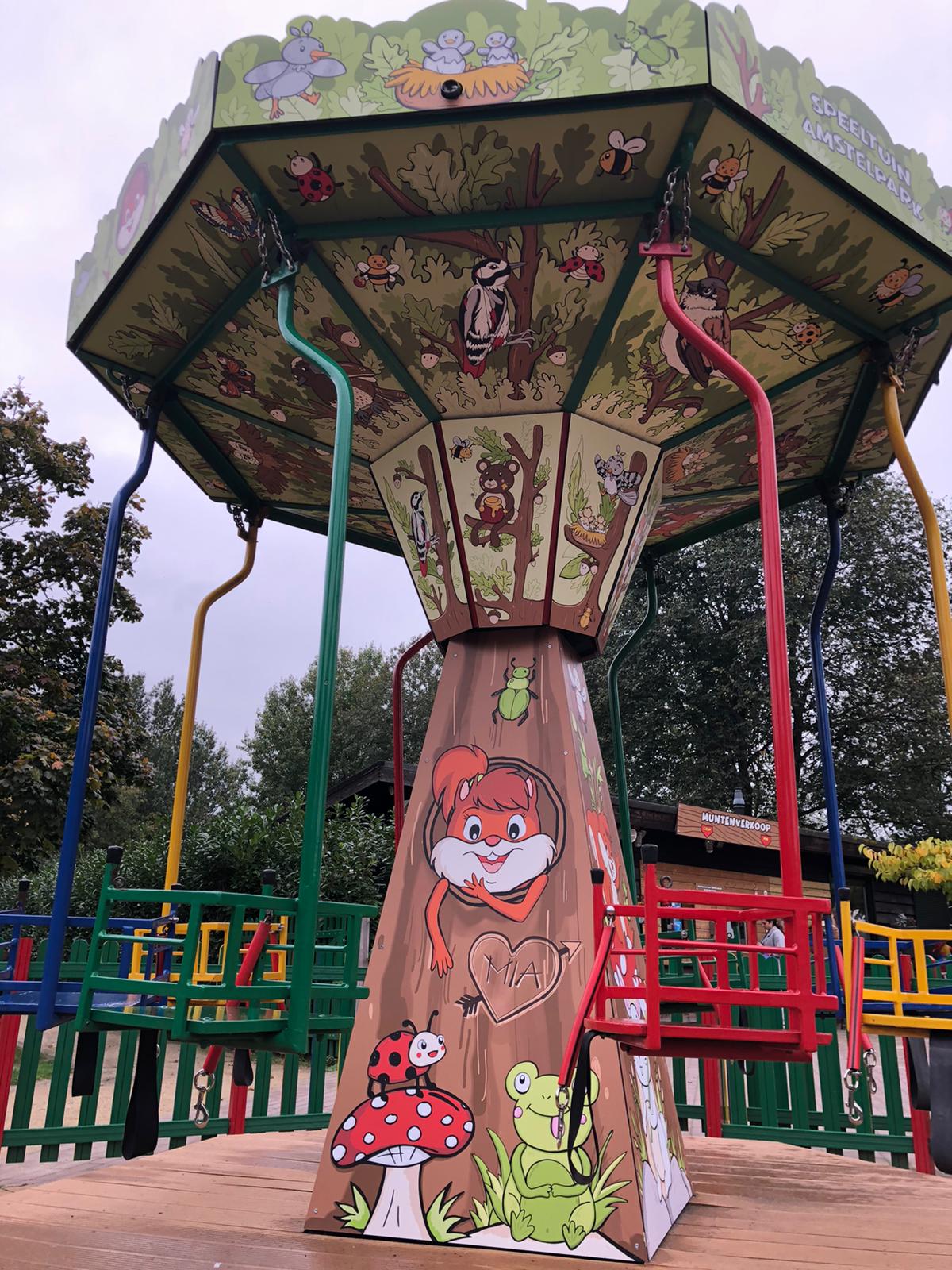 Speeltuin Amstelpark is een echte familiespeeltuin met veel speeltoestellen en attracties. Ik maakte een geheel nieuw ontwerp voor de zweefmolen in het park.