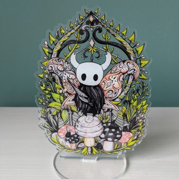 Hollow Knight sticker Void & Butterflies Mooie sticker met the Knight, Void en een aantal lifeblood vlinders. De sticker is geprint op mat papier en heeft een afmeting van ongeveer 80 x 76 mm. De stickers kosten €1,75 per stuk … Lees verder