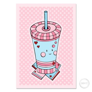 Kawaii wenskaart met smoothie Schattige wenskaart met een gekleurde smoothie, getekend door Dewy. De kaart is onderdeel van de Kawaii Fastfood Collectie. De producten binnen deze lijn hebben tekeningen van allerlei verschillende soorten junkfood, snacks en toetjes die je in … Lees verder