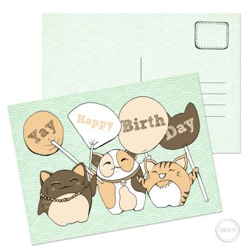 Verjaardagskaart met Japanse gelukskatten Een mooie verjaardagskaart! Op het kaartje staat een groep “Maneki Neko” katjes. Dit zijn een gelukskatjes uit Azië die geluk en rijkdom brengen. Ze wensen je een fijne verjaardag toe! De kaarten zijn gedrukt op A5-formaat … Lees verder