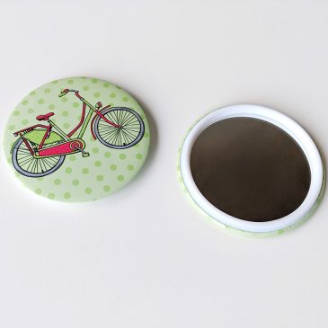 Make-up spiegeltje met Hollandse fiets Mooi, klein handspiegeltje van DewyCreations uiit de Hello Holland serie. Op dit spiegeltje staat het vrolijk gestipte fiets. Een spiegeltje heeft een diameter van ongeveer 7,5 cm (± 3 inch). De spiegeltjes kosten €7,50 per … Lees verder