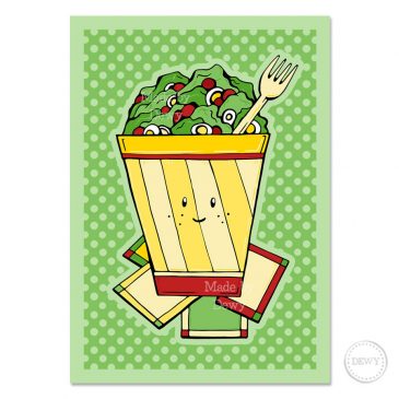 Schattige wenskaart met salade Schattige wenskaart met een gezonde salade, getekend door Dewy. De kaart is onderdeel van de Kawaii Fastfood Collectie. De producten binnen deze lijn hebben tekeningen van allerlei verschillende soorten junkfood, snacks en toetjes die je in … Lees verder