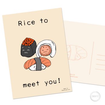 A6 wenskaart – Sushi Time Schattige wenskaart met Robin & Rowan die sushi aan het maken zijn. Rowan kan niet wachten om de sushi op te eten! De illustratie is onderdeel van de Robin & Rowan collectie. De kaarten zijn … Lees verder