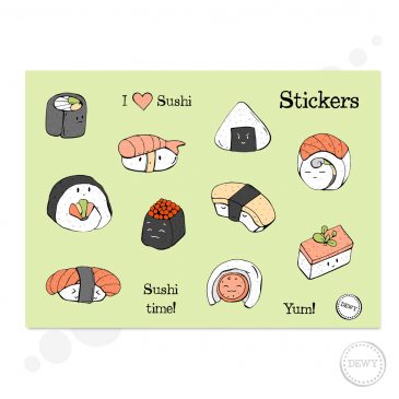 Kawaii mini sushi stickersheet Schattig stickervel met kleine sushi illustraties! Voor de echte Japan liefhebber! ^-^ Op het vel staan 18 verschillende sushi stickers. De stickers zijn geprint op mat stickerpapier. De stickers zijn professioneel uitgesneden met een Silhouette Cameo … Lees verder