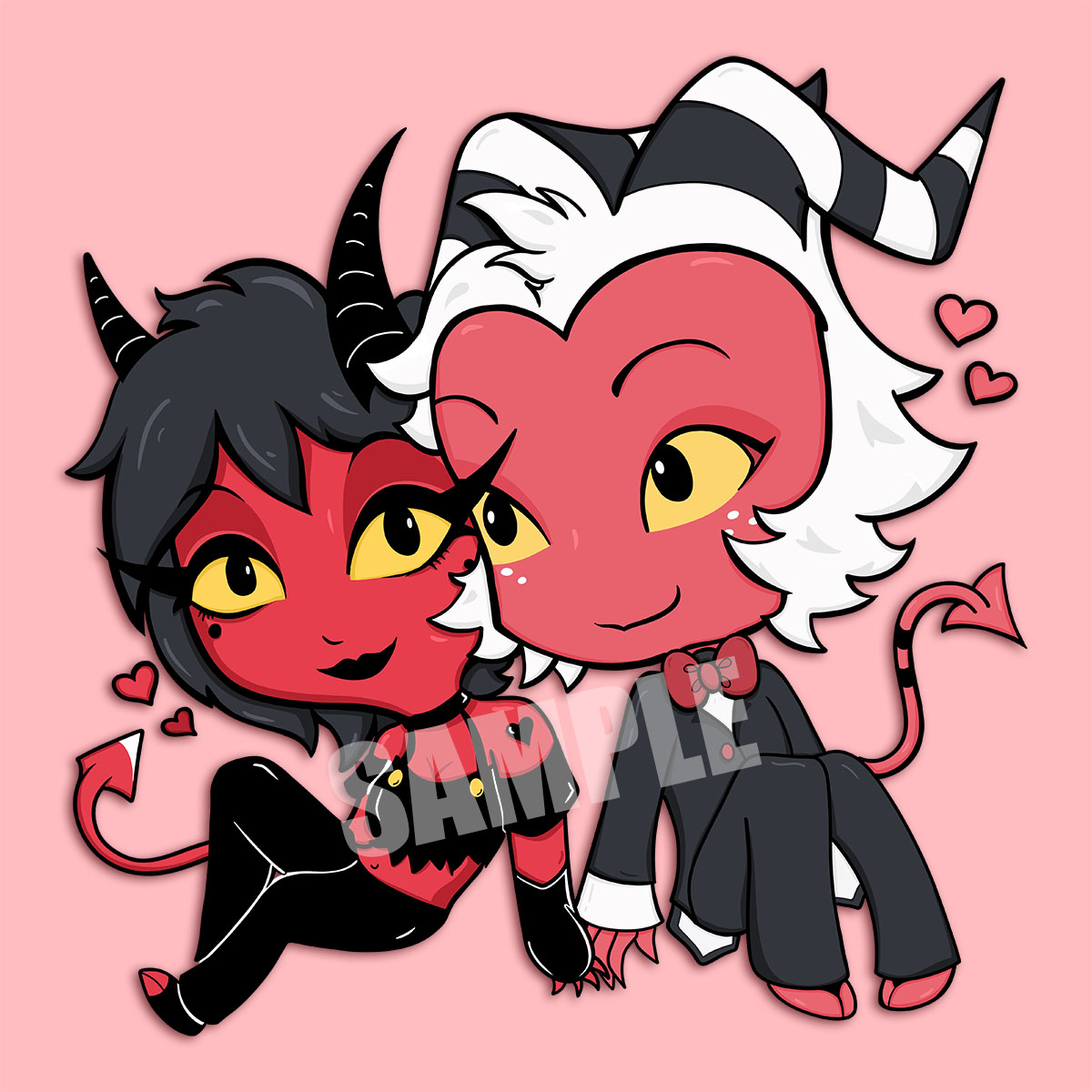 Schattige sleutelhanger met Millie en Moxxie uit Helluva Boss.