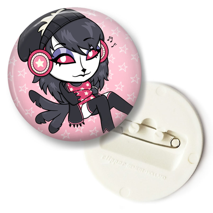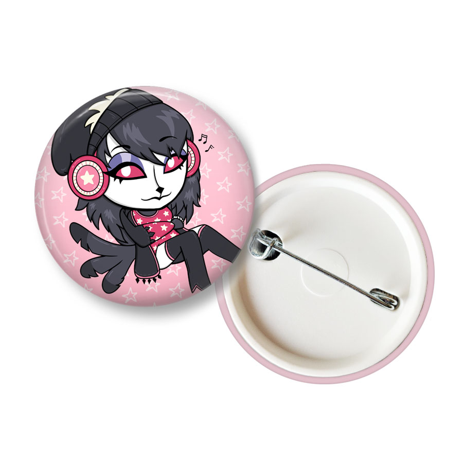 Helluva Boss button met Octavia. Je kan de buttons op van alles en nog spelden met de pin aan de achterkant. Versier bijvoorbeeld je tas of kleding!